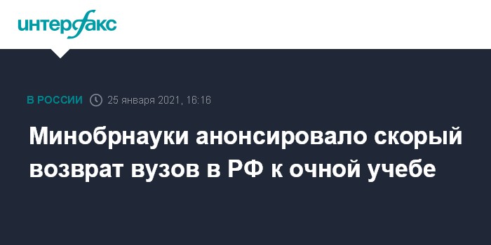 Москва. 25 января. INTERFAX.RU - Эпидемиологическая ситуация в России позволяет вузам в ближайшее время вернуться к очному формату обучения, заявил министр науки и высшего образования Валерий Фальков.