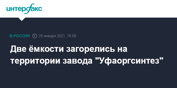 Москва. 25 января. INTERFAX.RU - Возгорание двух емкостей произошло на "Уфаоргсинтезе", сообщили журналистам в пресс-службе МЧС РФ.
