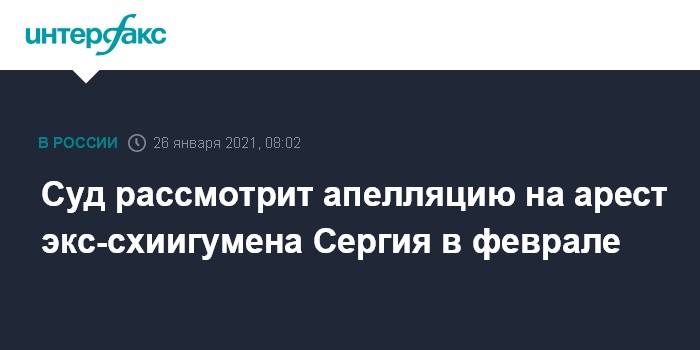 Суд рассмотрит апелляцию на арест экс-схиигумена Сергия в феврале