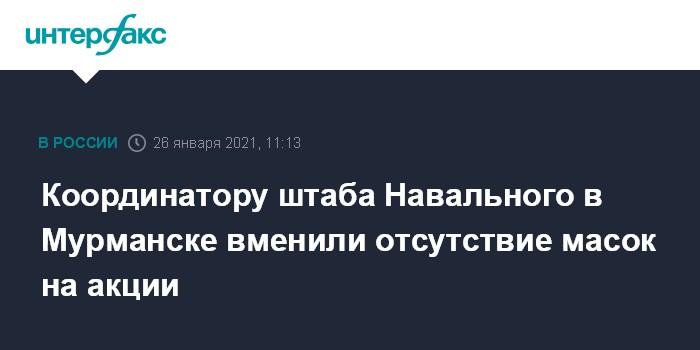 Москва. 26 января. INTERFAX.RU - Мурманский штаб Алексея Навального сообщил, что полицейские начали составлять на участников несогласованной акции 23 января протоколы о нарушении масочного режима.