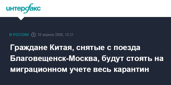 Граждане Китая, снятые с поезда Благовещенск-Москва, будут стоять на миграционном учете весь карантин