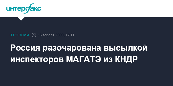 Россия разочарована высылкой инспекторов МАГАТЭ из КНДР