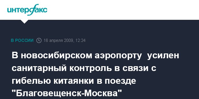 В свою очередь, главный государственный санитарный врач по Западно-Сибирской железной дороге Галина Афанасьева сказала агентству, что поезд "Благовещенск-Москва", где в среду скончалась гражданка Китая, через железнодорожную станцию "Новосибирск-главный" проходил в полпервого ночи по местному времени 13 апреля.