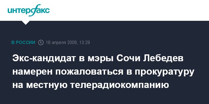 Экс-кандидат в мэры Сочи Лебедев намерен пожаловаться в прокуратуру на местную телерадиокомпанию
