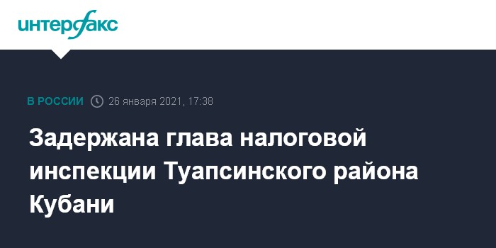 "Начальник межрайонной ИФНС России по №6 по Краснодарскому краю Елена Семеняк задержана сотрудниками ФСБ. По месту жительства и в рабочем кабинете задержанной проведены обыски, изъяты документы, представляющие интерес для следствия", - сказал источник.