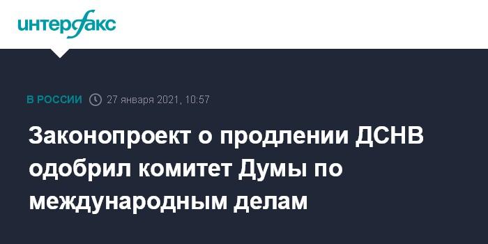Законопроект о продлении ДСНВ одобрил комитет Думы по международным делам