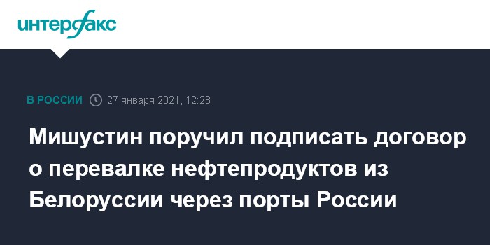 Мишустин поручил подписать договор о перевалке нефтепродуктов из Белоруссии через порты России