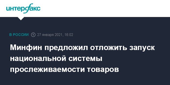Москва. 27 января. INTERFAX.RU - Минфин сообщил, что предложил правительству отложить до 30 июня запуск национальной системы прослеживаемости товаров (НСП) и продлить на этот же срок ее тестирование.