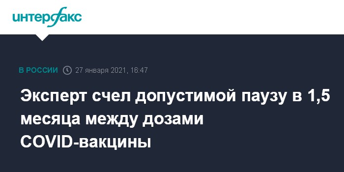 Москва. 27 января. INTERFAX.RU - Интервал между вакцинацией первым и вторым компонентом вакцины от коронавируса может составлять до 6 недель, останавливать вакцинацию из-за большого перерыва не нужно, заявил заместитель директора по научной работе Центрального НИИ эпидемиологии Роспотребнадзора Александр Горелов.