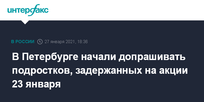 Москва. 27 января. INTERFAX.RU - Следователи в Петербурге вызывают на допрос несовершеннолетних, задержанных на акции оппозиции 23 января, сообщили журналистам в среду в организации "Правозащита Открытки", адвокаты которой помогают вызванным в СКР семьям.