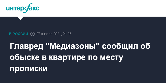 Москва. 27 января. INTERFAX.RU - Главный редактор издания "Медиазона" Сергей Смирнов сообщил в своем Телеграм-канале об обыске в квартире по месту прописки.