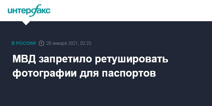 Москва. 28 января. INTERFAX.RU - Новый административный регламент министерства внутренних дел (МВД) РФ по выдаче и замене российских паспортов уже вступил в силу, одним из нововведений является запрет на обработку и ретуширование фотографий для документа, сообщила в четверг "Российская газета".