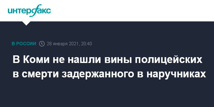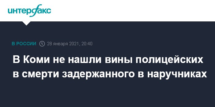 Москва. 28 января. INTERFAX.RU - Следователи в Сосногорске (Коми) не стали возбуждать уголовное дело против полицейских по факту смерти задержанного, сообщили "Интерфаксу" в городской прокуратуре.