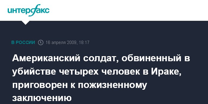 Американский солдат, обвиненный в убийстве четырех человек в Ираке, приговорен к пожизненному заключению