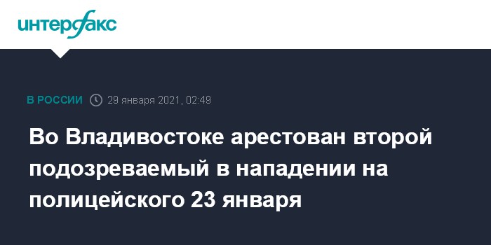 Во Владивостоке арестован второй подозреваемый в нападении на полицейского 23 января