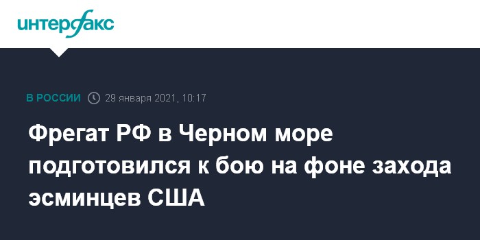 Москва. 29 января. INTERFAX.RU - Фрегат "Адмирал Макаров" на фоне захода двух эсминцев США в Чёрное море покинул пункт базирования и вышел в море, где отрабатывает ряд задач.