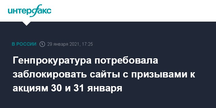 Генпрокуратура потребовала заблокировать сайты с призывами к акциям 30 и 31 января