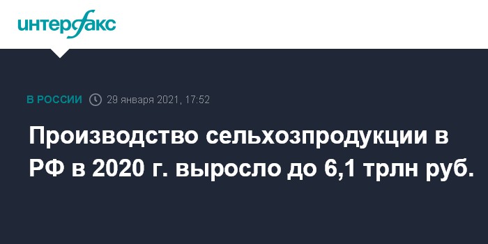 Производство сельхозпродукции в РФ в 2020 г. выросло до 6,1 трлн руб.