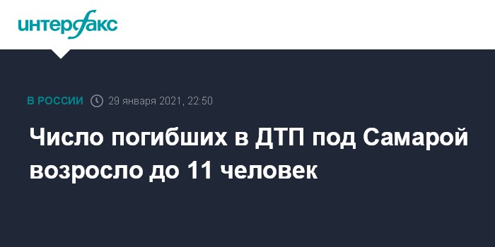Москва. 29 января. INTERFAX.RU - Число погибших в результате ДТП под Самарой с участием рейсового микроавтобуса увеличилось до 11 человек, всего пострадали 24 человека, сообщил губернатор Самарской области Дмитрий Азаров в инстаграме.