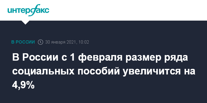 В России с 1 февраля размер ряда социальных пособий увеличится на 4,9%