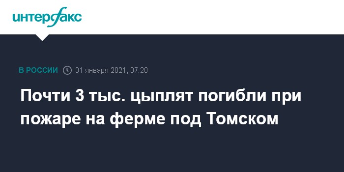 Почти 3 тыс. цыплят погибли при пожаре на ферме под Томском