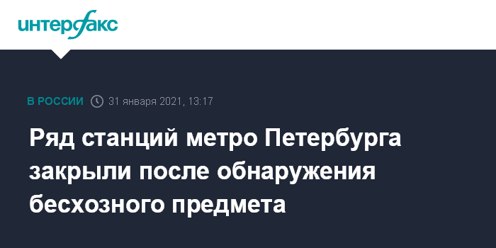 Москва. 31 января. INTERFAX.RU - Несколько станций петербургского метро закрыты в связи с обнаружением бесхозного предмета.