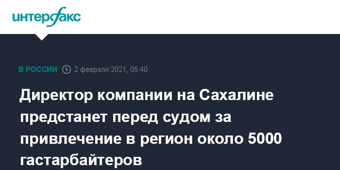 Директор компании на Сахалине предстанет перед судом за привлечение в регион около 5000 гастарбайтеров