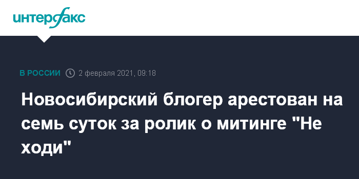 Новосибирский блогер арестован на семь суток за ролик о митинге "Не ходи"