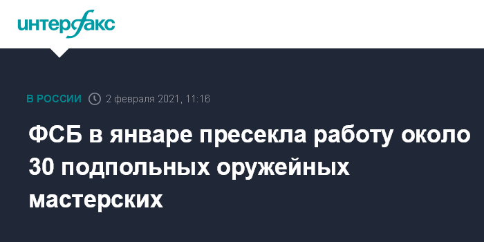 ФСБ в январе пресекла работу около 30 подпольных оружейных мастерских