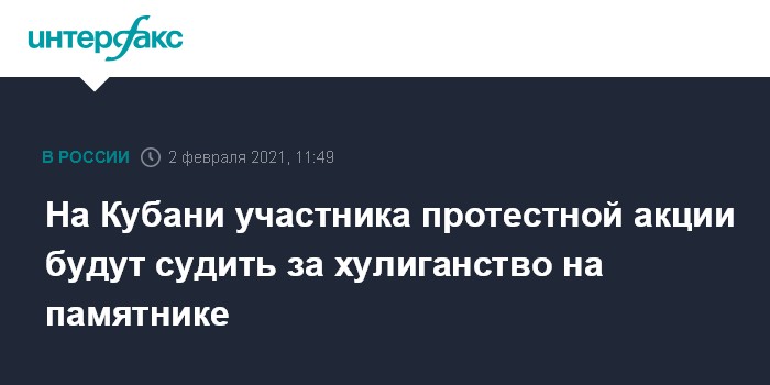 На Кубани участника протестной акции будут судить за хулиганство на памятнике