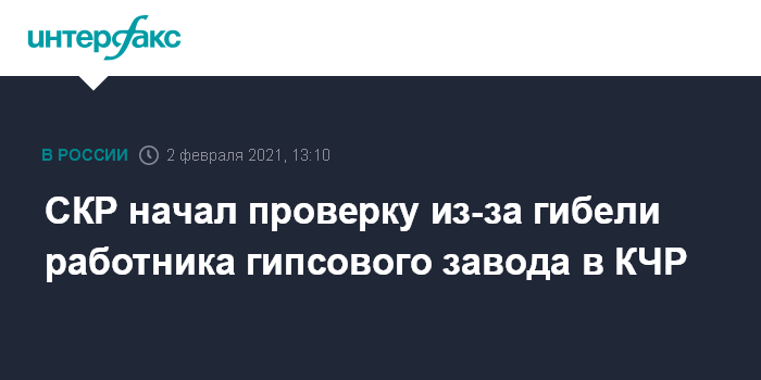 Москва. 2 февраля. INTERFAX.RU - Следственное управление Следственного комитета РФ по Карачаево-Черкесии организовало доследственную проверку по факту гибели рабочего гипсового завода, сообщает СУ СКР по КЧР.