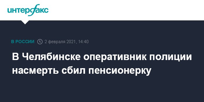 Москва. 2 февраля. INTERFAX.RU - Свердловский оперуполномоченный на служебном автомобиле в понедельник сбил 65-летнюю женщину в Челябинске, она скончалась, сообщил "Интерфаксу" информированный источник.