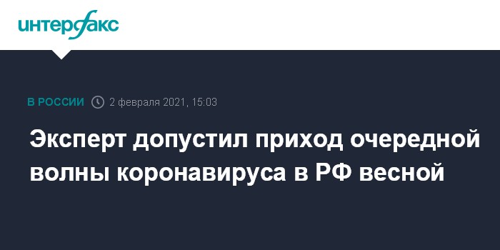 Москва. 2 февраля. INTERFAX.RU - Новая вспышка коронавирусной инфекции в России может начаться весной - в конце марта - начале апреля, когда произойдет потепление, считает ведущий специалист НИЦ эпидемиологии и микробиологии имени Гамалеи Федор Лисицын.