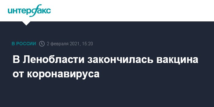 Москва. 2 февраля. INTERFAX.RU - Партия вакцины от коронавируса из 10 тысяч доз, поступившая в Ленинградскую область, уже полностью реализована, регион ожидает новые поставки, сообщил губернатор Александр Дрозденко.