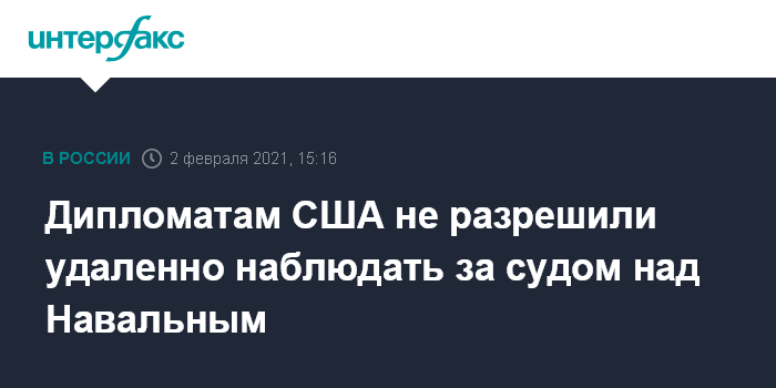 Москва. 2 февраля. INTERFAX.RU - Представители посольства США в Москве присутствуют на заседании суда по делу оппозиционера Алексея Навального, так как не получили возможности дистанционного наблюдения за процессом.