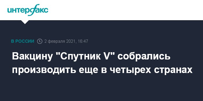 Вакцину "Спутник V" собрались производить еще в четырех странах