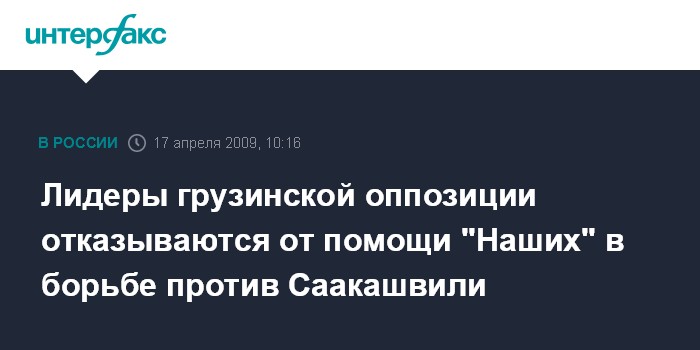 Москва. 17 апреля. INTERFAX.RU - Лидеры грузинской оппозиции заявляют, что российское молодежное движение "Наши" своими действиями играют на руку нынешнему руководству Грузии.