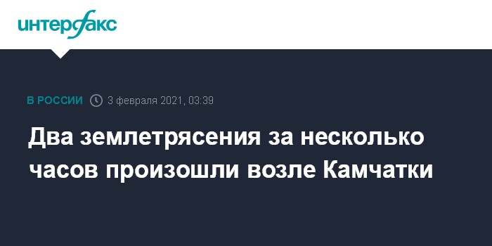 Москва. 3 февраля. INTERFAX.RU - Сейсмологи зарегистрировали два землетрясения у берегов Камчатки, сообщили в среду "Интерфаксу" в Камчатском филиале Единой Геофизической службы РАН.