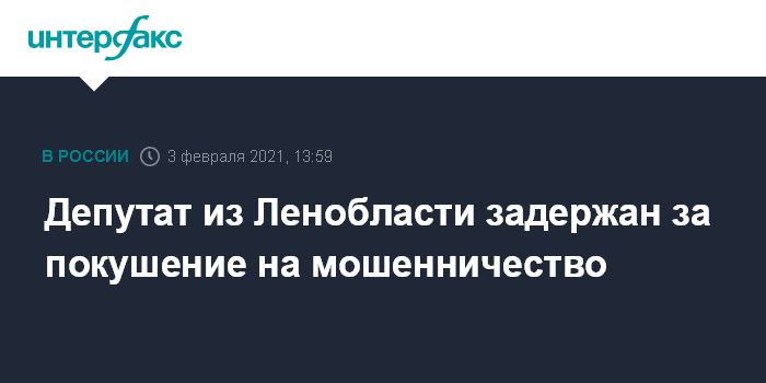 Москва. 3 февраля. INTERFAX.RU - Депутат Законодательного собрания Ленинградской области, якобы пообещавший коммерсантам решить вопросы с уголовным преследованием, стал фигурантом уголовного дела о покушении на мошенничество в Петербурге.