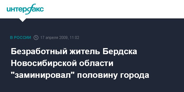 Москва. 17 апреля. INTERFAX.RU - Сотрудники милиции задержали 60-летнего местного жителя после его звонка о том, что половина города Бердска Новосибирской области заминирована.