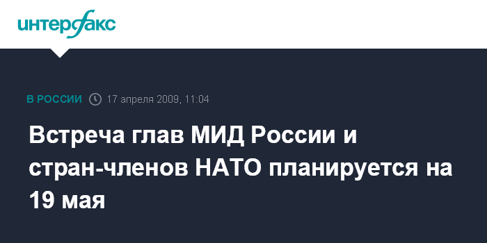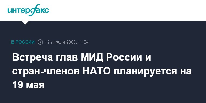 Москва. 17 апреля. INTERFAX.RU - Министерская встреча в рамках Совета Россия-НАТО на уровне глав МИД может состояться в Брюсселе 19 мая.