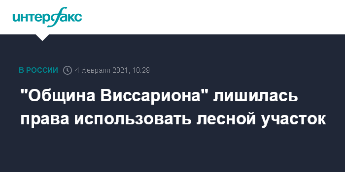 Москва. 4 февраля. INTERFAX.RU - Арбитражный суд Красноярского края по иску регионального Минлесхоза расторг договор безвозмездного пользования лесным участком с религиозной организацией "Церковь последнего завета" ("Община Виссариона". Об этом говорится в картотеке арбитражных дел.