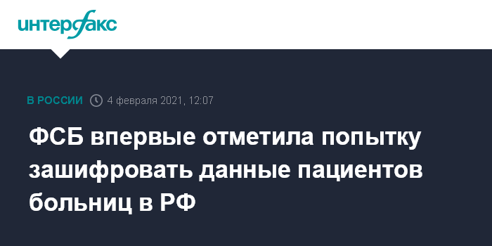 ФСБ впервые отметила попытку зашифровать данные пациентов больниц в РФ