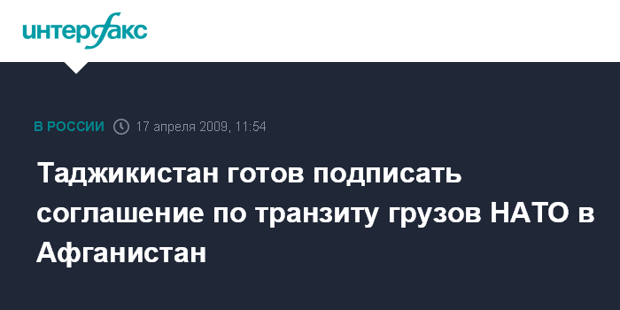 Москва. 17 апреля. INTERFAX.RU - Первый замминистра иностранных дел Таджикистана Абдулло Юлдошев заявил, что Душанбе готов подписать соглашение по транзиту через свою территорию невоенных грузов Североатлантического альянса (НАТО), следующих в соседний Афганистан.
