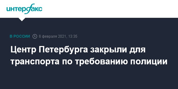 Москва. 6 февраля. INTERFAX.RU - Центральные улицы Санкт-Петербурга перекрыты для движения транспорта в связи с требованием регионального главка МВД, сообщает комитет по транспорту города в своем телеграм-канале в субботу.