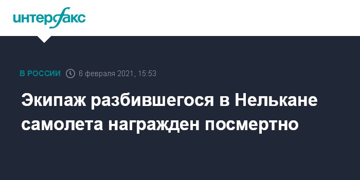Экипаж разбившегося в Нелькане самолета награжден посмертно