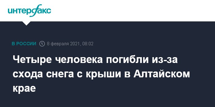 Четыре человека погибли из-за схода снега с крыши в Алтайском крае