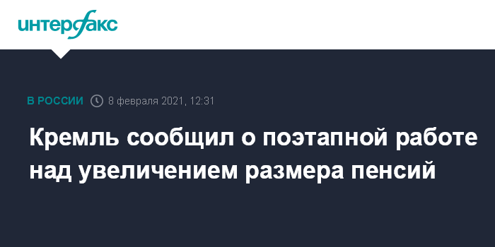Кремль сообщил о поэтапной работе над увеличением размера пенсий