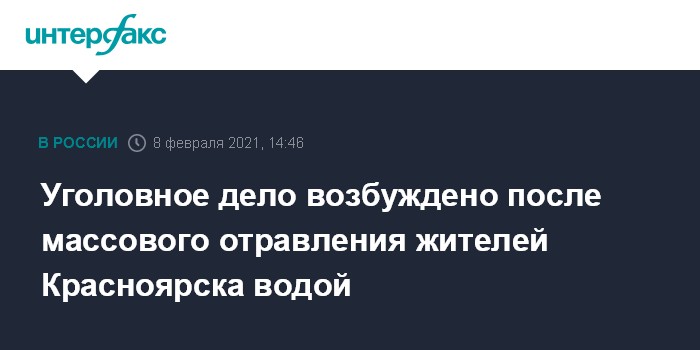 Уголовное дело возбуждено после массового отравления жителей Красноярска водой