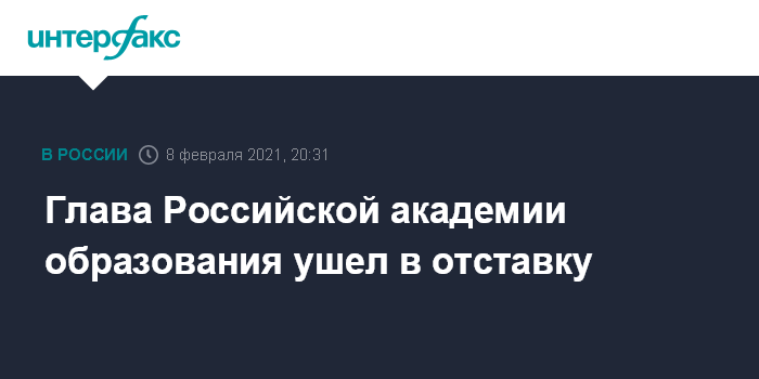 Москва. 8 февраля. INTERFAX.RU - Президент Российской академии образования (РАО) Юрий Зинченко покинул свой пост, временно исполняющим обязанности главы Академии назначен Эдуард Галажинский, сообщается на сайте РАО.